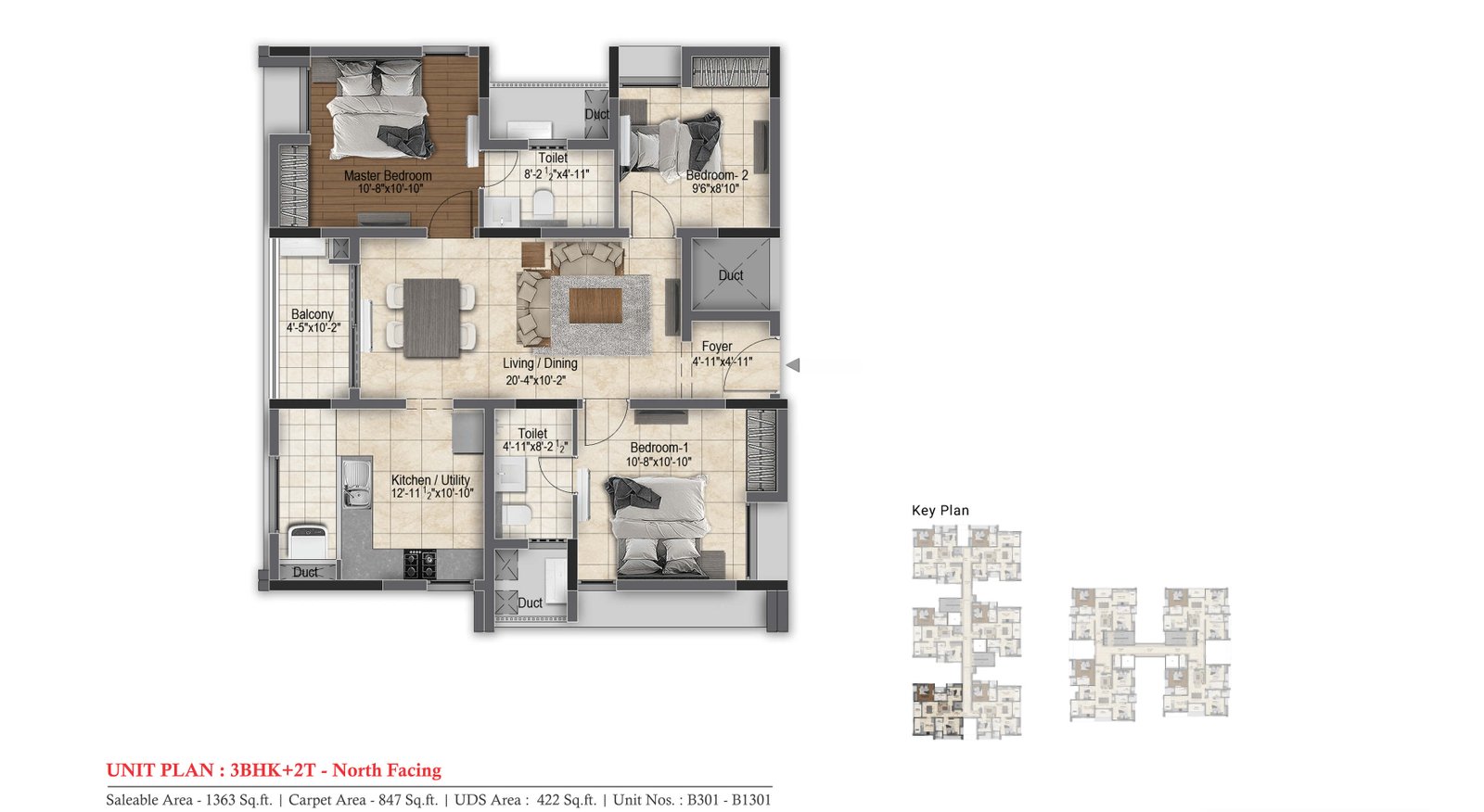 | 3 BHK | 1363 sq.ft | 847 sq.ft | View Price | View |