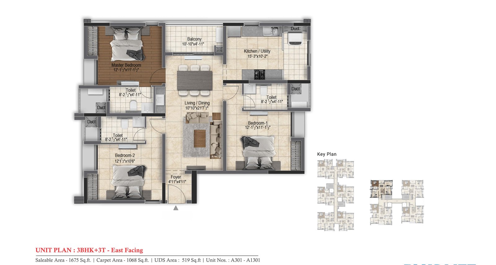 | Unit Type | Saleable Area | RERA Carpet Area | Price | Floor Plans |